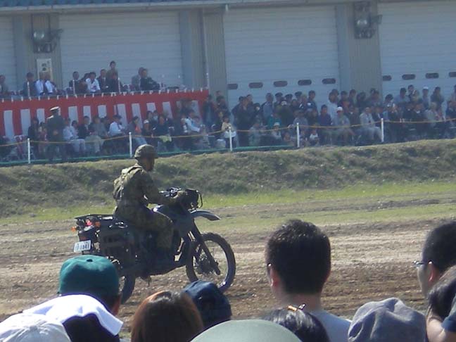 偵察用バイクに跨った隊員さんが敵地帯へ文字通り偵察へきた模様。アクロバット走行とかはなかった。しょぼん。