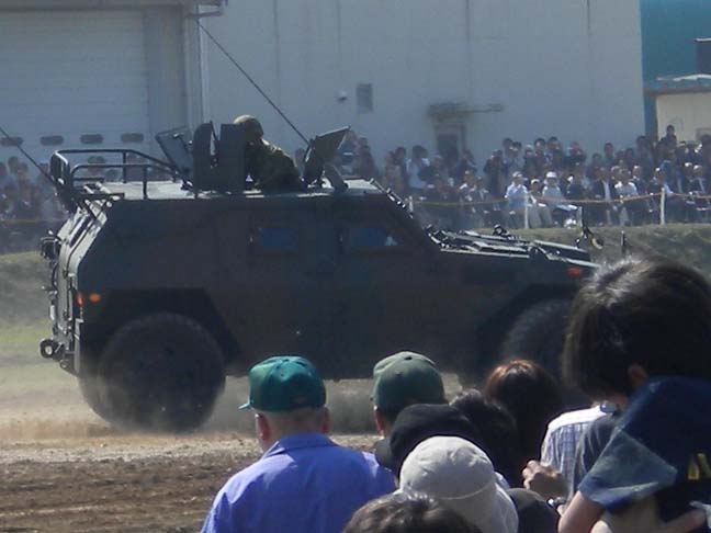 軽装甲機動車はぐるんと僕らがいる外野側までやってきて綺麗な高速Uターンで見せ付けてくれました。かっけー!(゚∀゚)