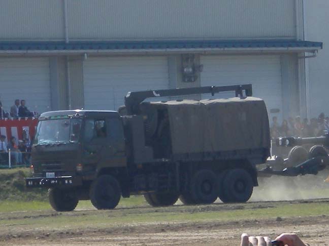 155mmりゅう弾砲を引いていたのでした。愛称はサンダーストーン。略称はFH-70です。相当でかいですよ。けん引車が大型トラックくらい・・・と言うと大きさが少しはわかりますでしょうか。