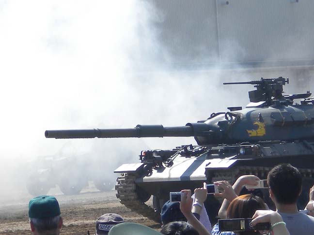 僕のすぐ後ろの一家にも息子さんと同じくらいの男の子が抱っこされてたんですが、(・ω・)?ときょとん顔。大物だ・・・。なんて思ってたら、またズガボウン!と響く戦車空砲の音。