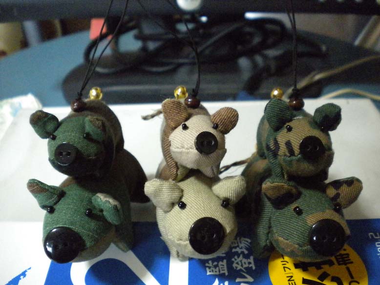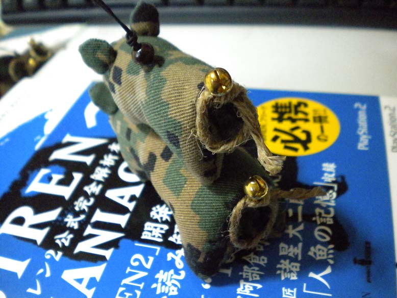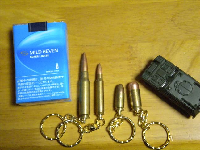 左から、9mm実弾ネックレス・実弾キーホルダー達・何かおまけでついてきた実弾空薬莢です。