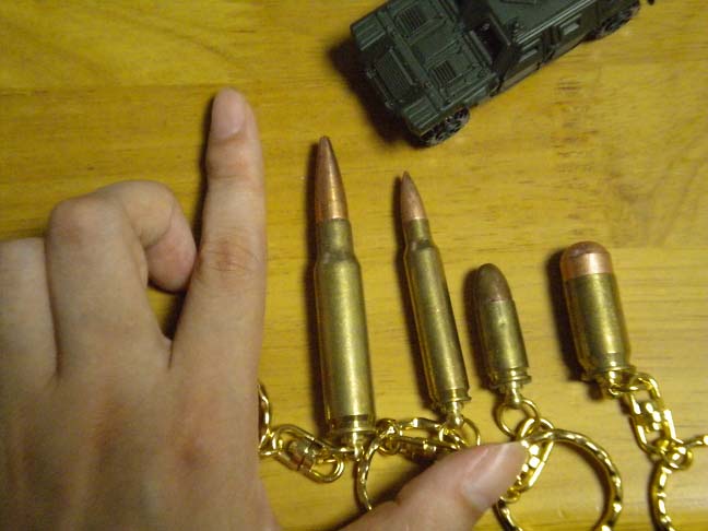 ずっと弾丸キーホルダー等欲しくて探してたんですが、本当の模造品(セラミック等)はあっても、実弾やそれに近いものってなかなかなくって・・・。あったとしても高かったり、キーホルダー等に加工されてなかったり・・・